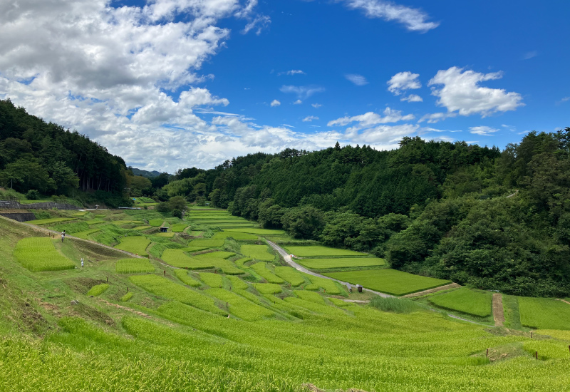 飯田市千代にある棚田で「棚田百選」に認定されています。田植えの時期から秋の稲刈りの時期まで美しい光景が広がります。